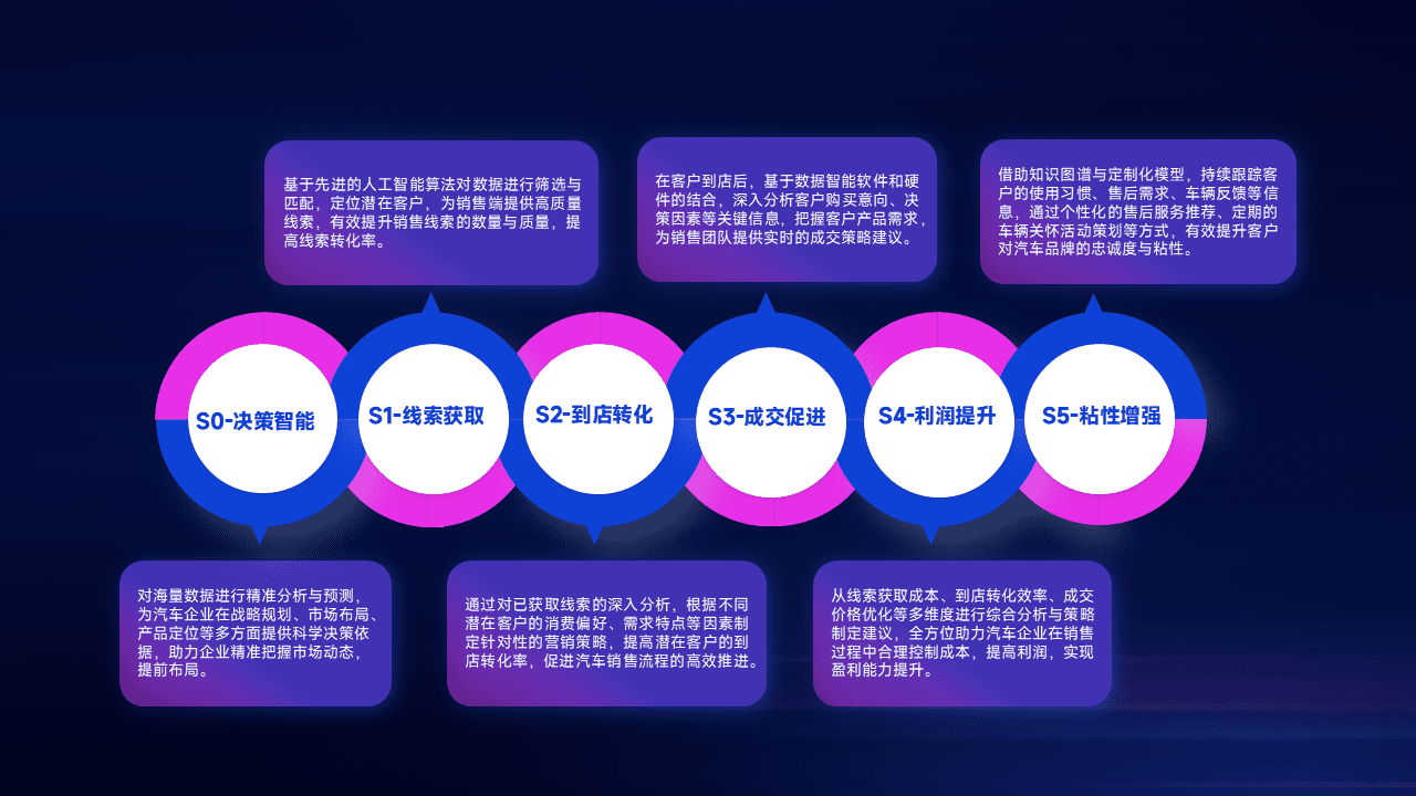 通过拓宽潜在客户来源、、、、优化线索分配并提高到店转化率,,,以增强销售效率。。。。同时,,利用线索数据不断优化分析模型,,有效提升转化率,,扩大营销影响力。。
